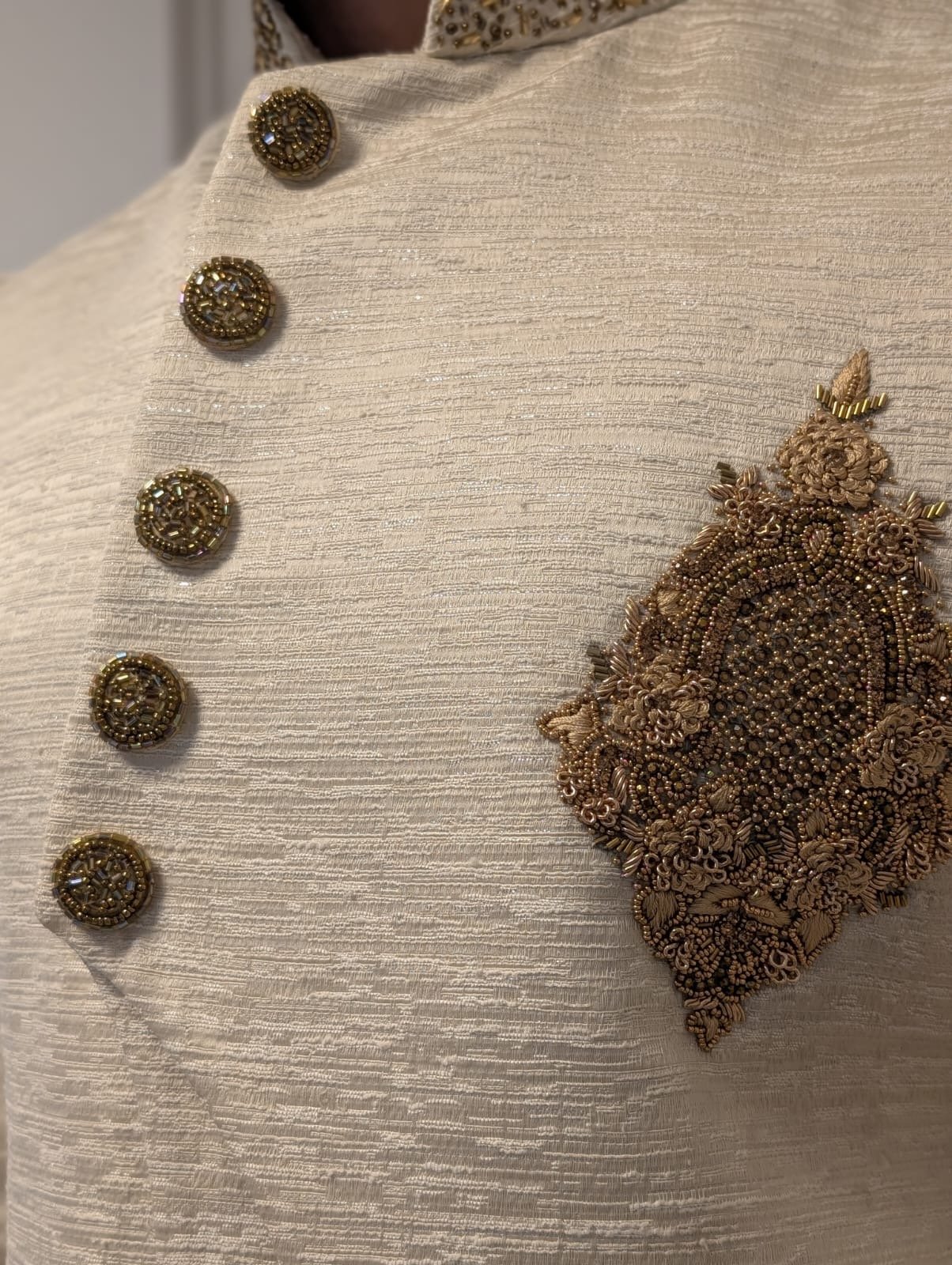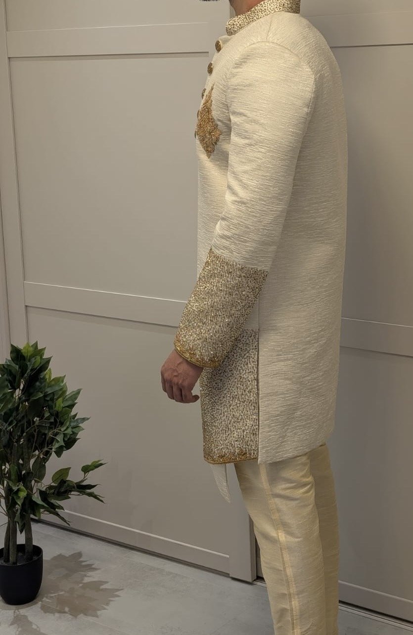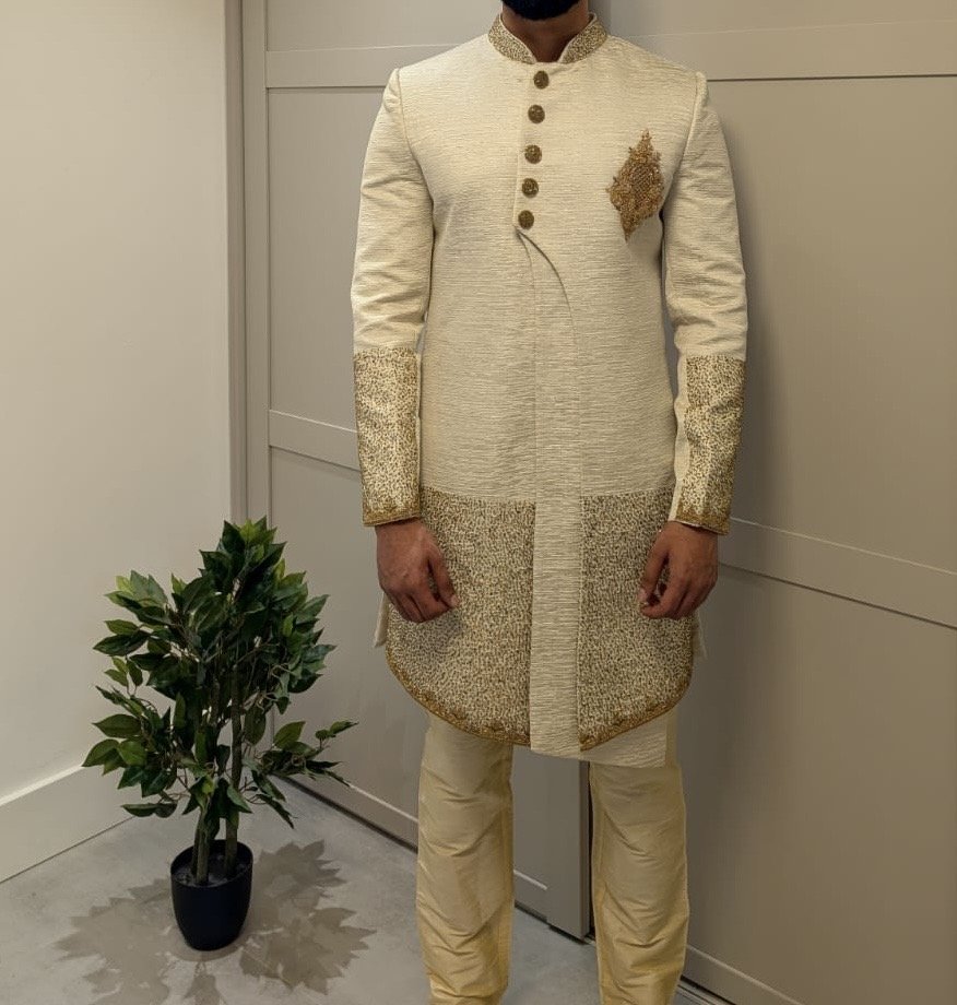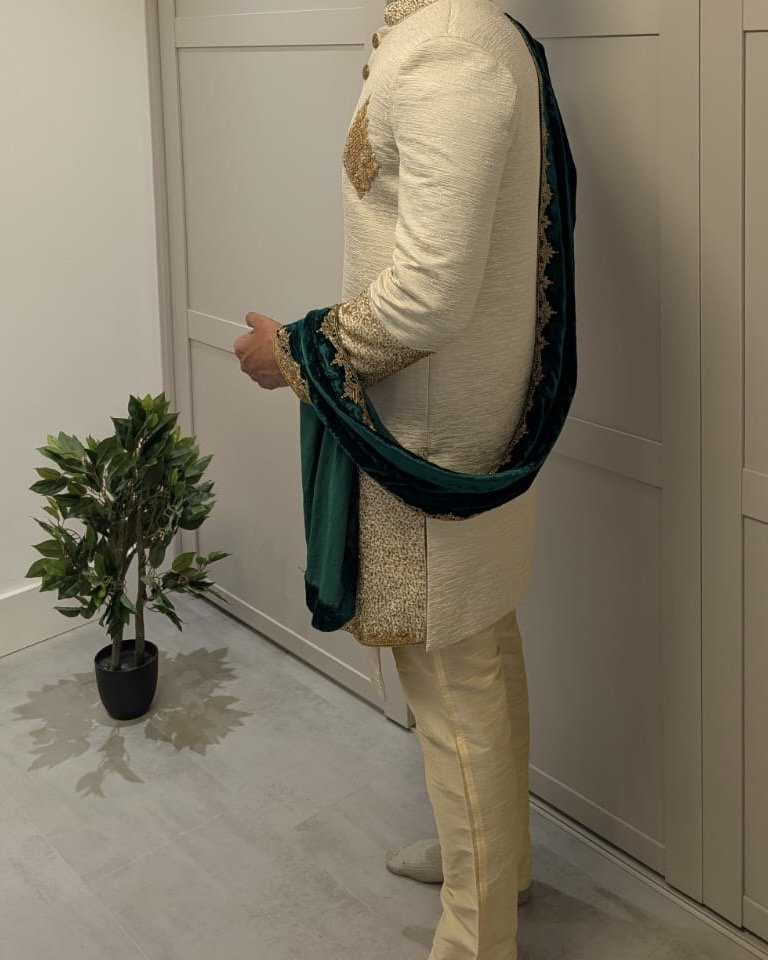 Unused grooms wear from 7aatrang Birmingham comes with trousers and velvet bottle green drape with two border work worth alone £100