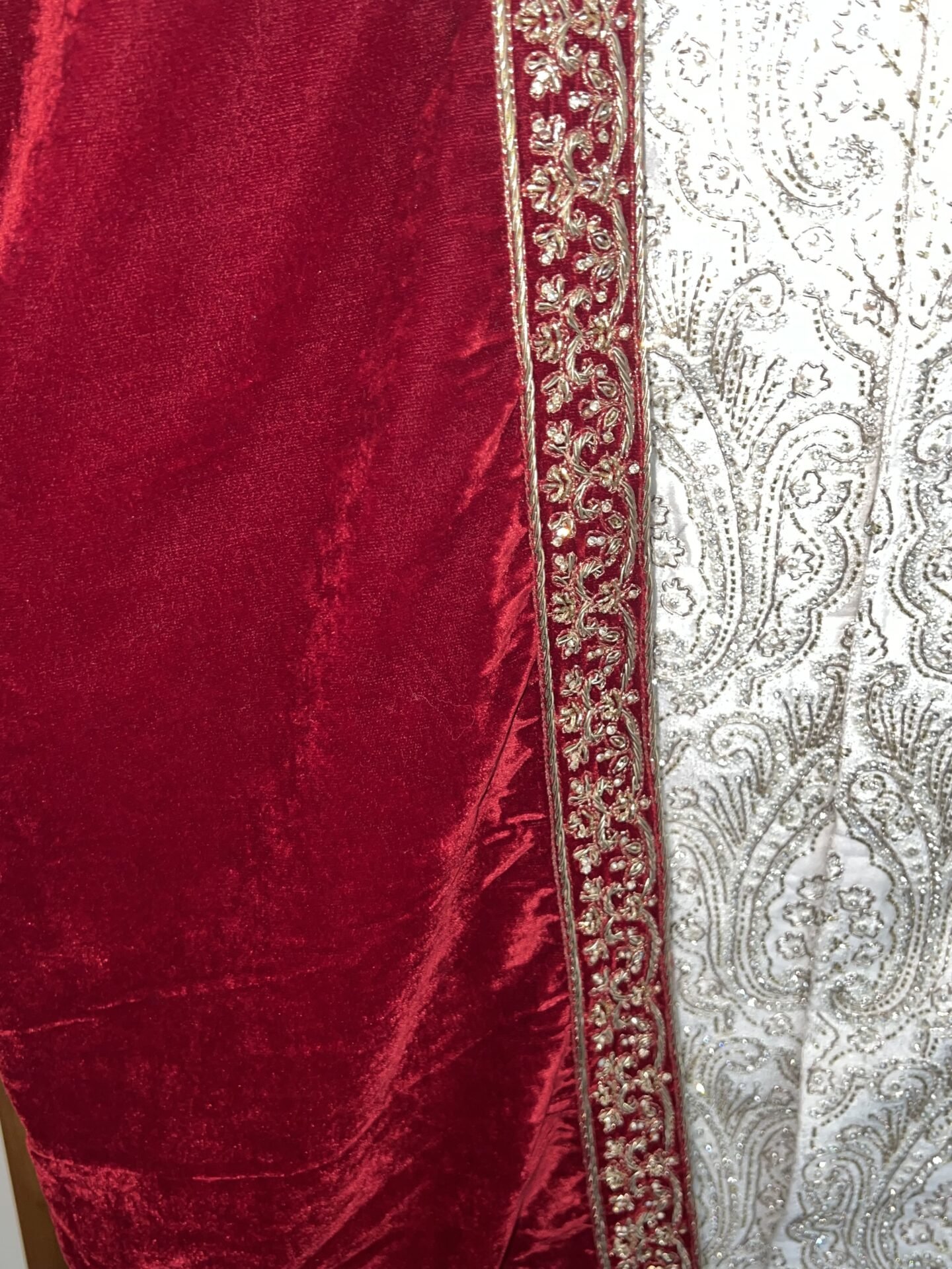 Comes with a red shawl with golden stone work also comes with matching shoes size 8. Only worn for few hours. Open to offers feel free to message me.