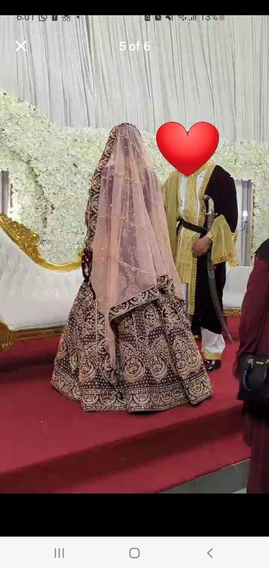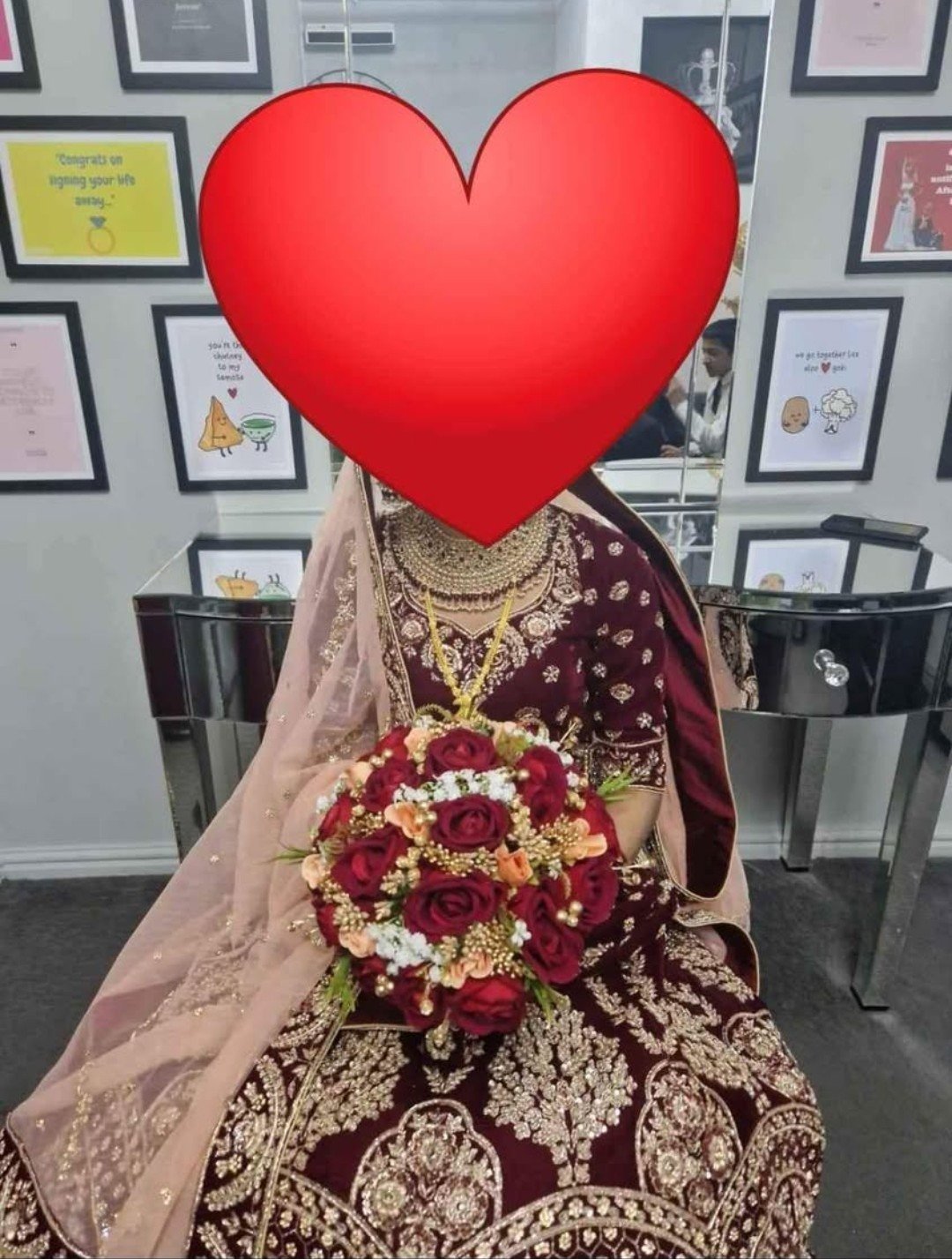 Beautiful Bridal Asian Dress made with exquisite hand embroidery and intricate design patterns, the fitted bodice complimented with the flowing skirt gives a graceful silhouette effect. Pre-loved Worn only once, this dress remains in pristine condition, ready to bring joy and beauty to another bride's special day. Comes with an elegant pinkish peach veil as shown pictured.