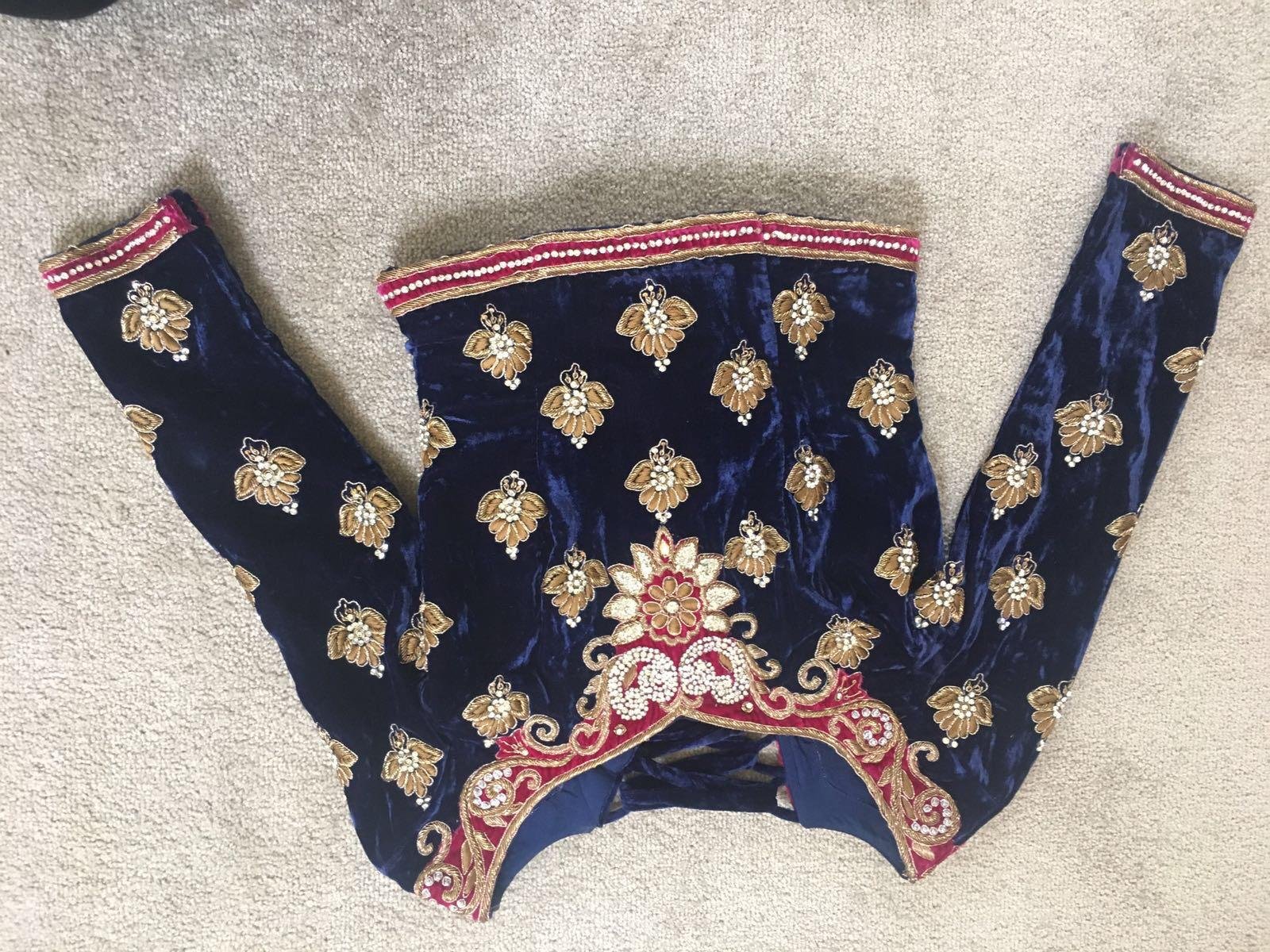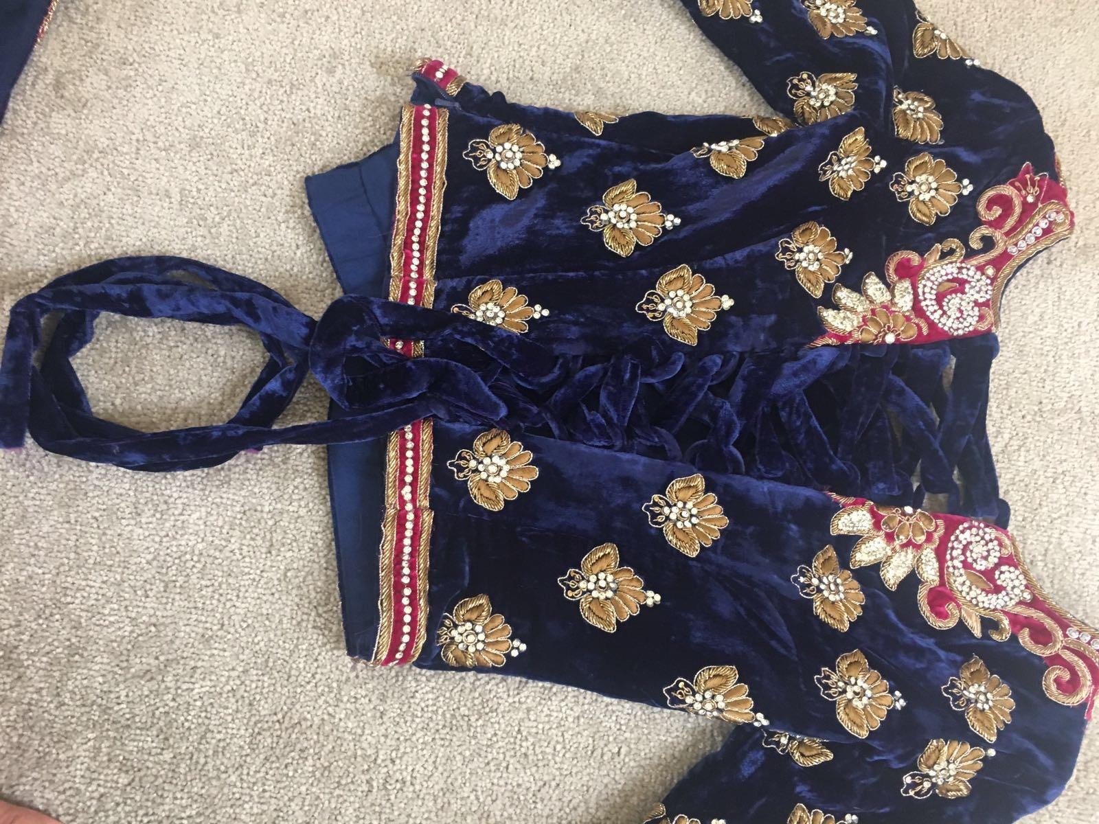 Bridal Lengha September 9, 2024 Id: 36921 Bridal Lengha £1500 Bookmark Share Share This Listing Description: Blue velvet lengha, with white stones and gold, silver embellishments. Corset style blouse with pink floral design. Headscarf with a design of a crown supplied. Contact Information Phone: 07592300433 Email: aminamiah@outlook.com categories: Women Listing Tags: bluelehenga Post New Review Cancel replyYou must be logged in to post a comment.