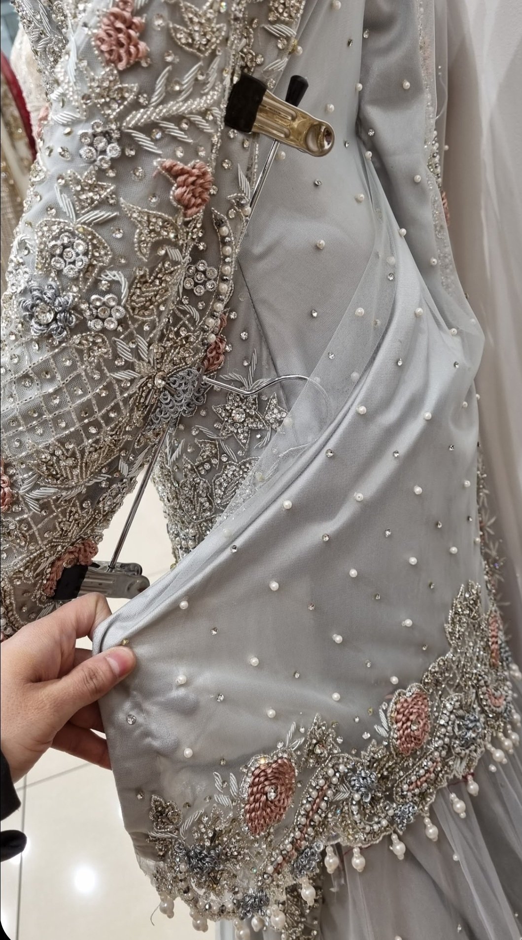handcrafted, delicate embroidery with stones.