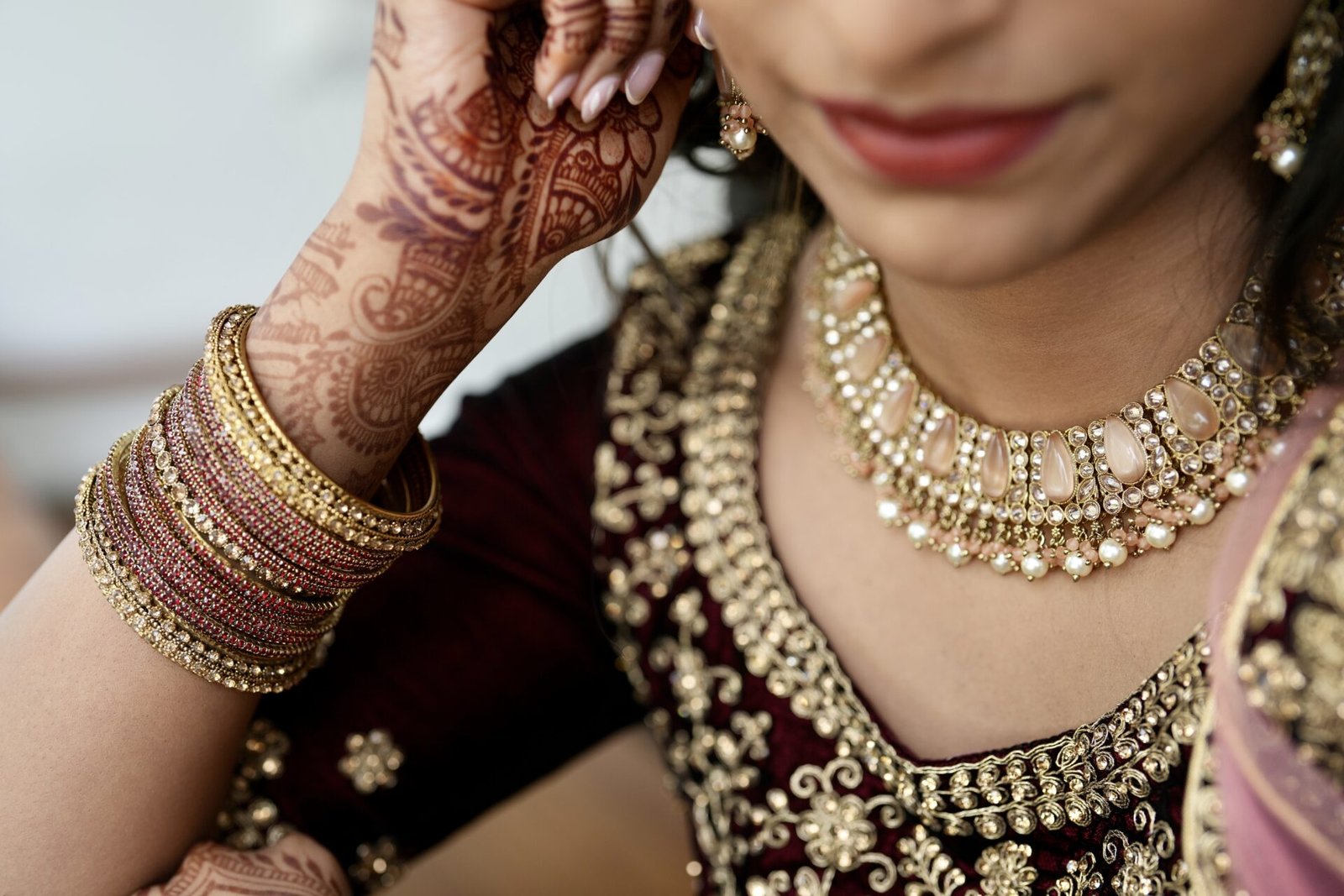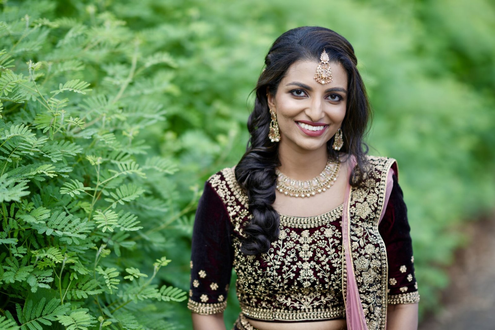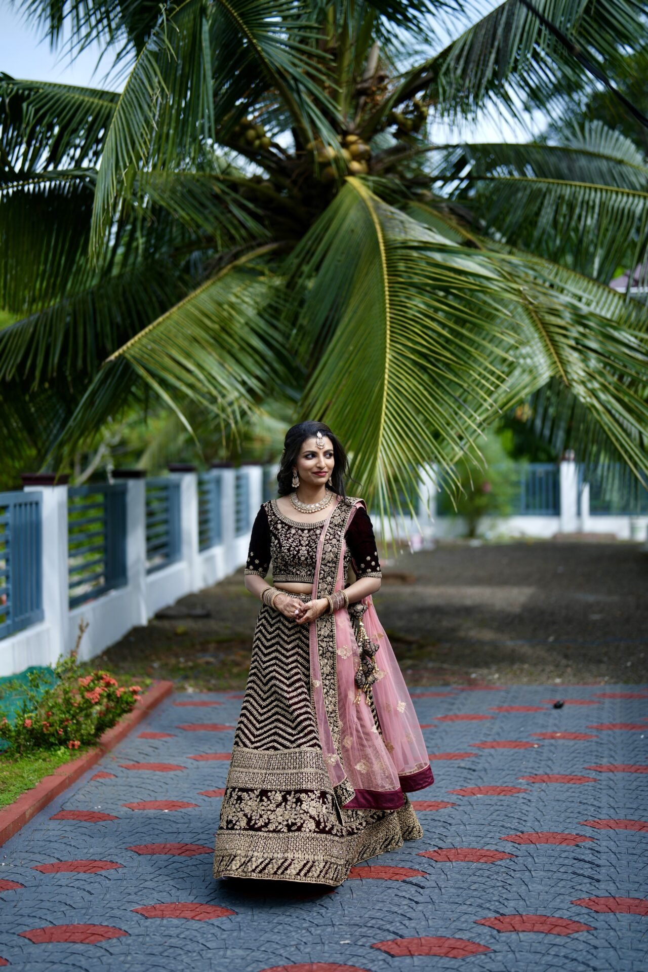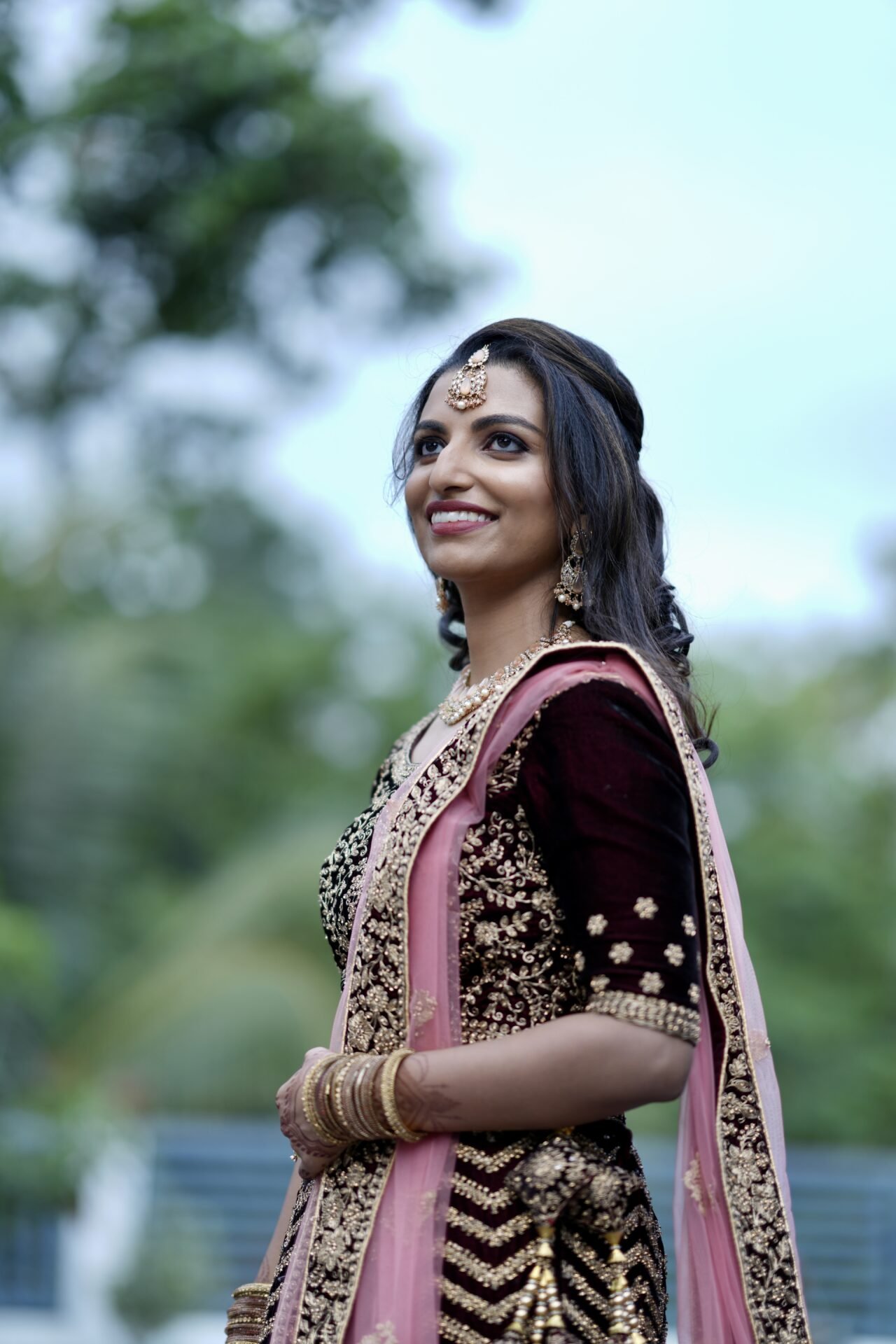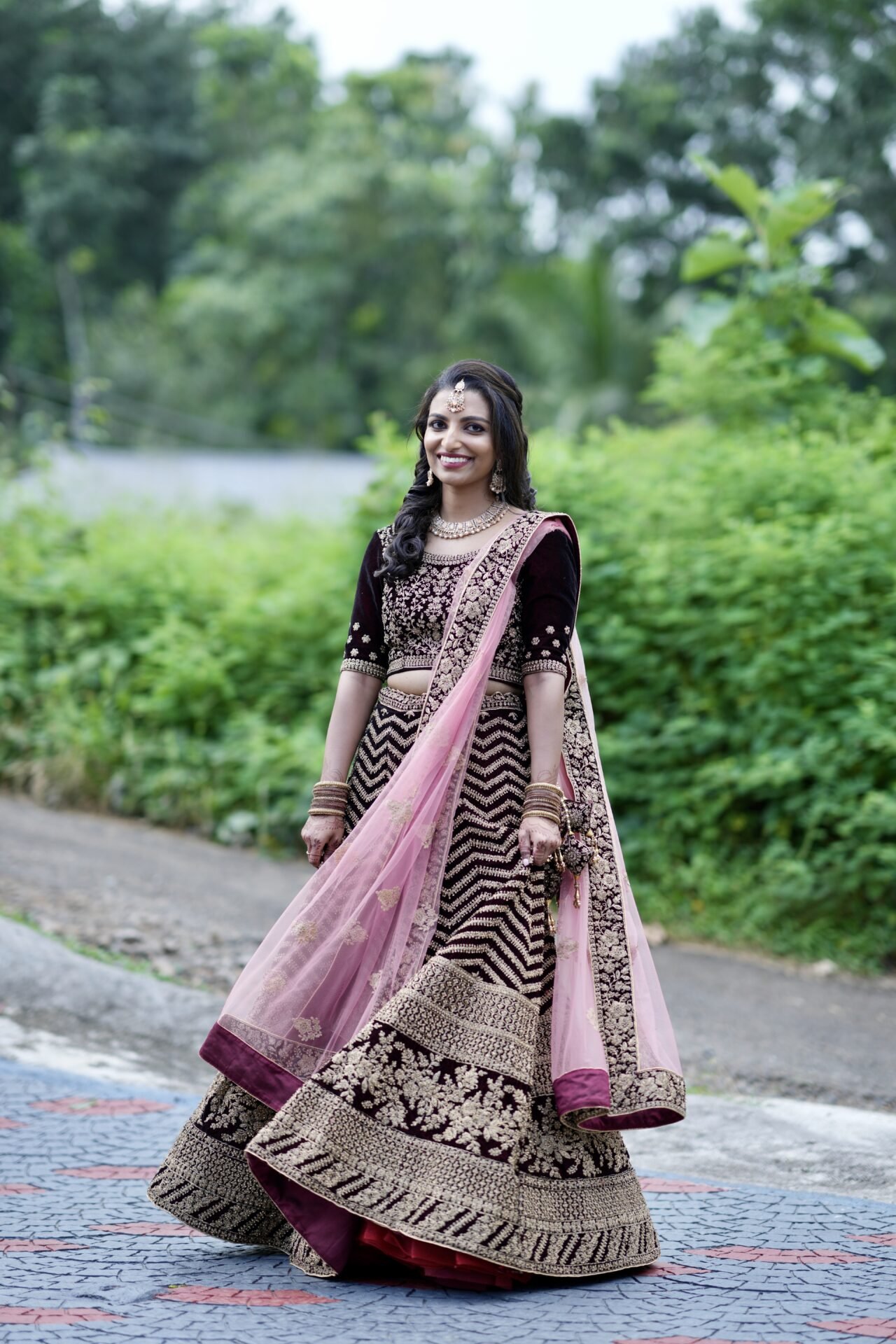 Selling my maroon custom made heavy work bridal lehenga. I wore it just the once for my engagement. It was custom made and has a contrast pink dupatta. All parts of the lehenga seen pictured comes with it. Still in excellent condition.