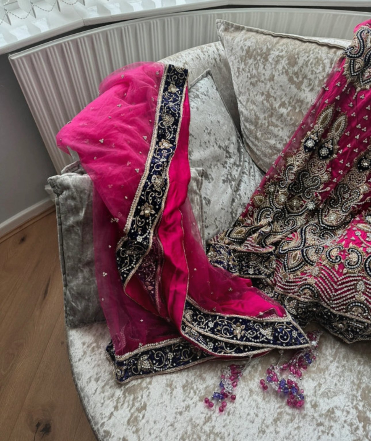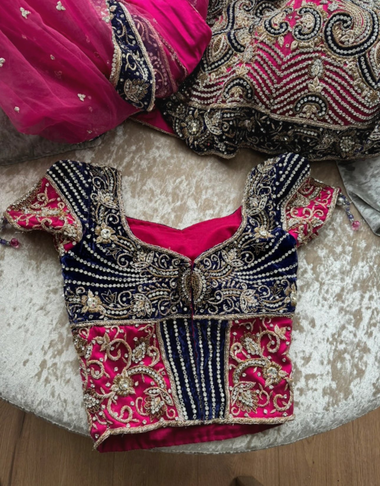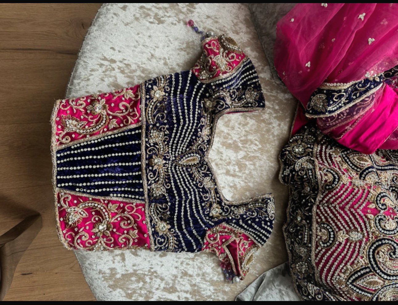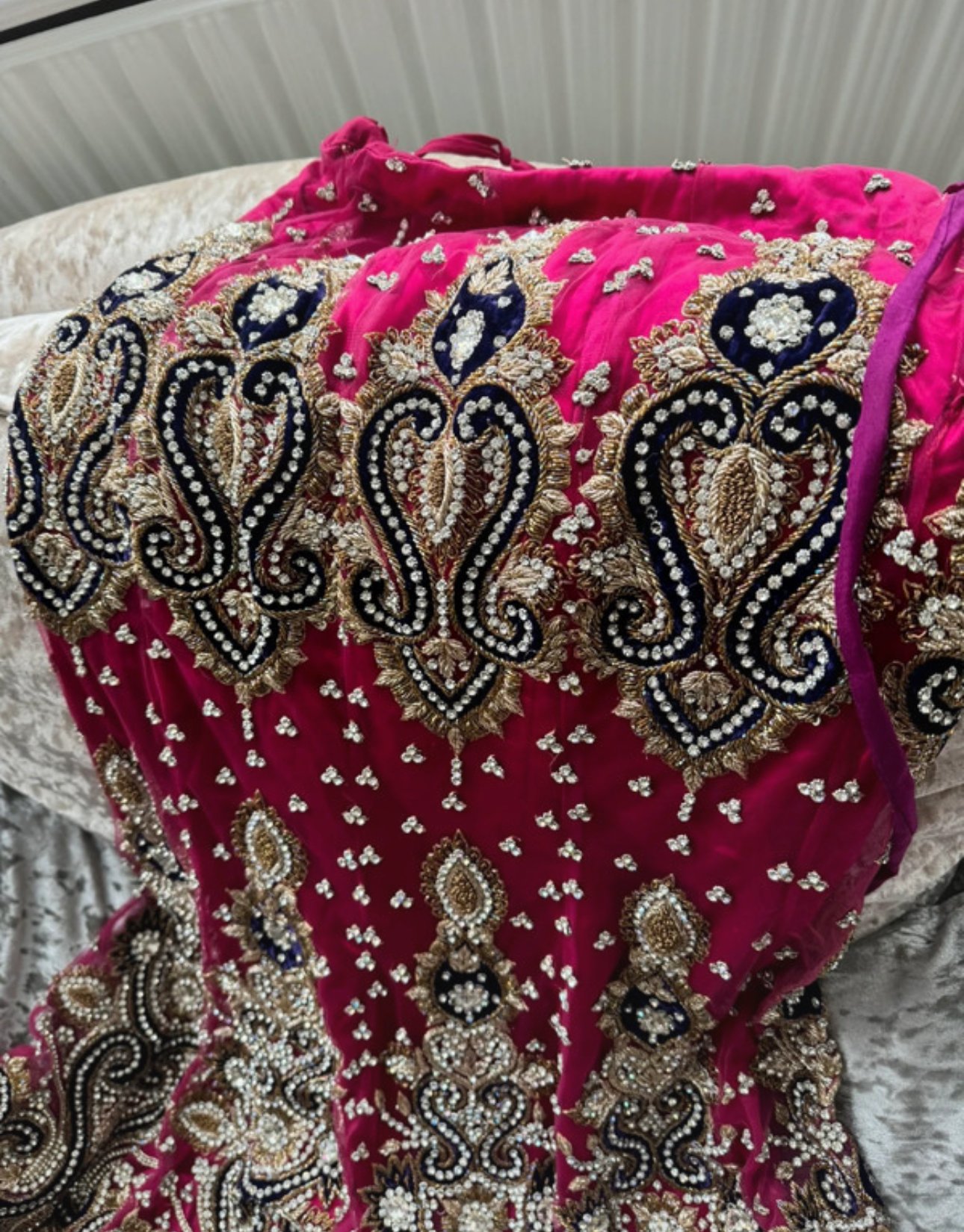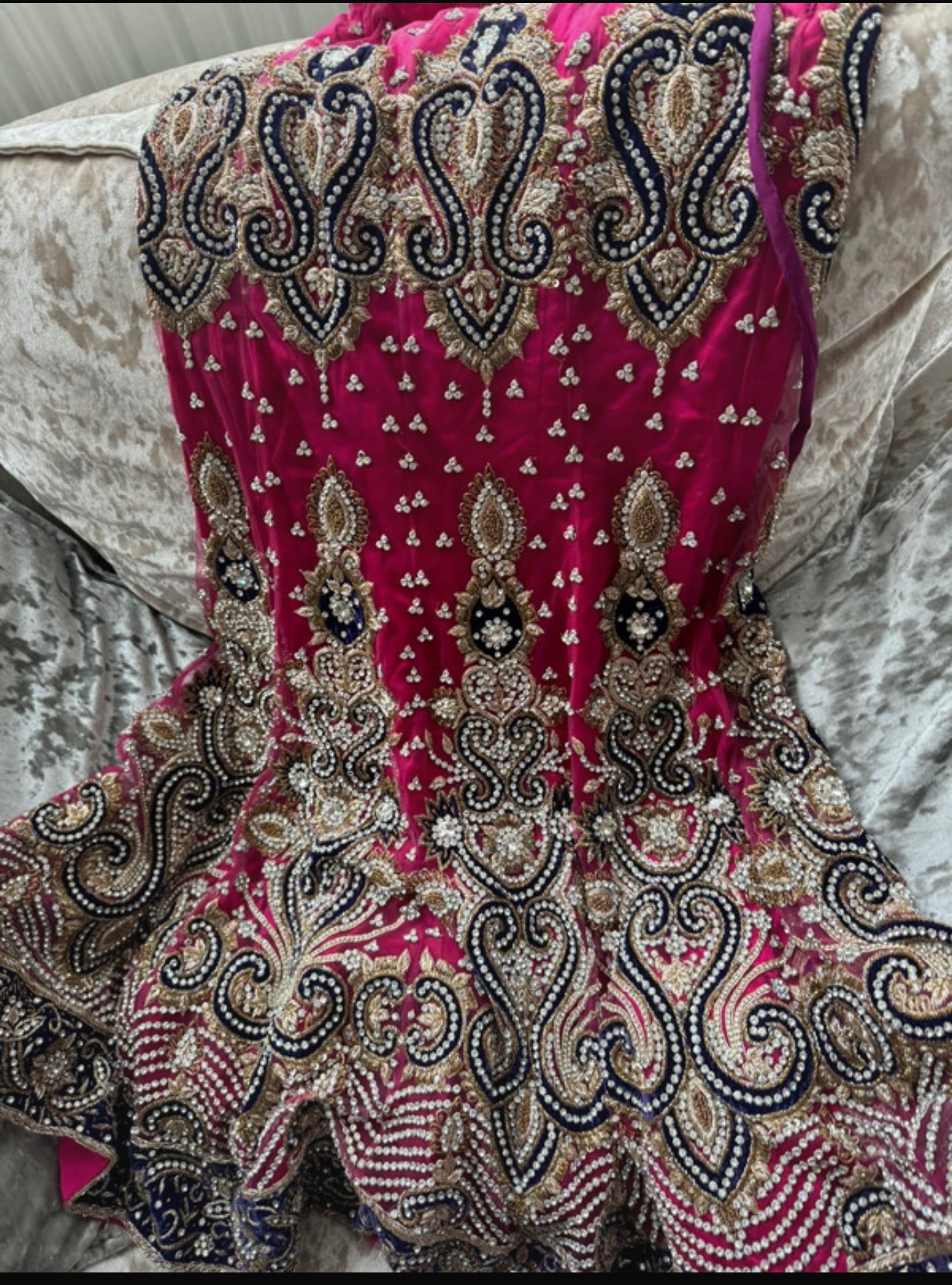 Pink and purple contrast with stone work. Excellent for a bride or a close occasion. Worn once. I paid £500