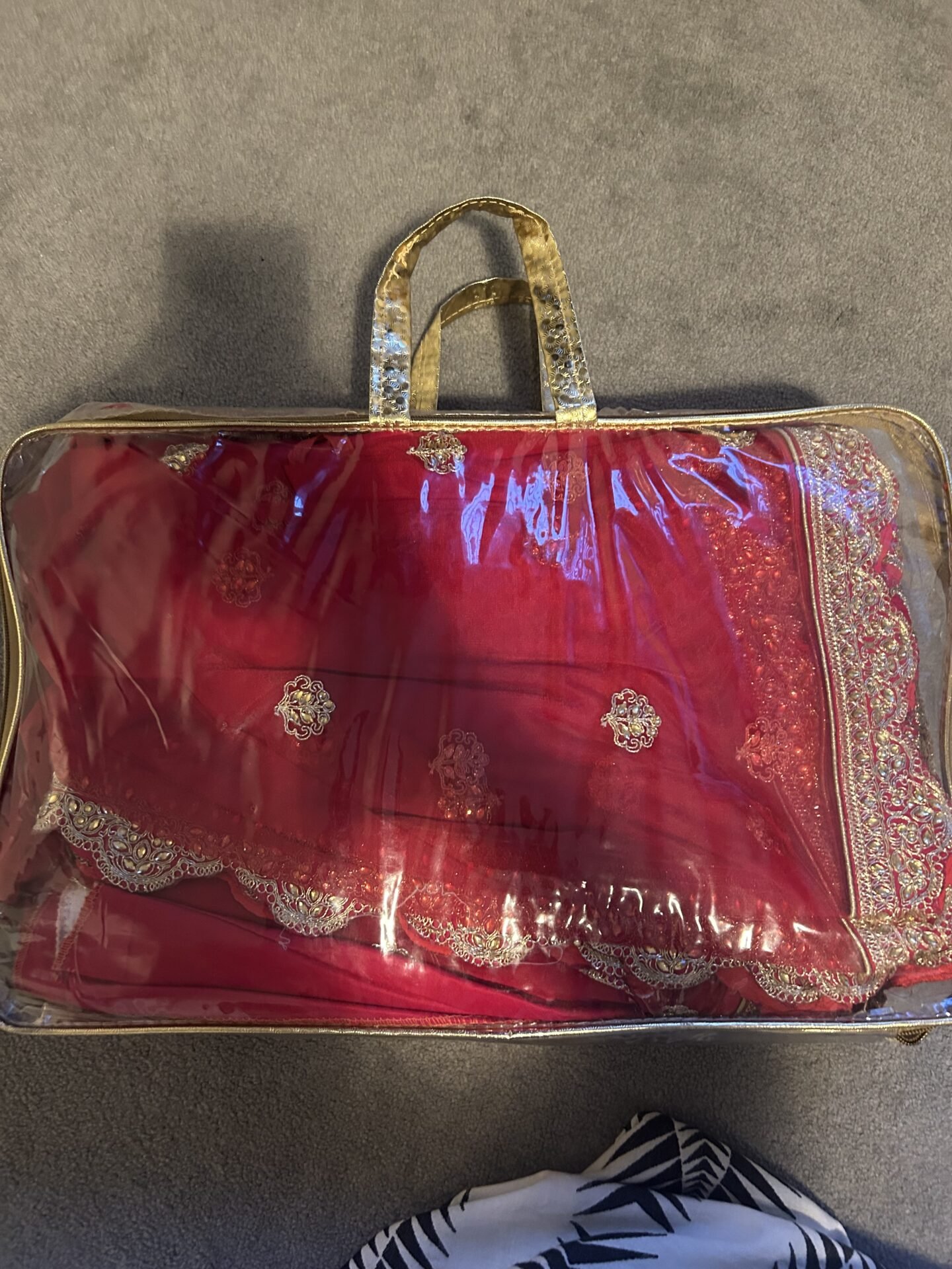 Beautiful red with gold embroidery.