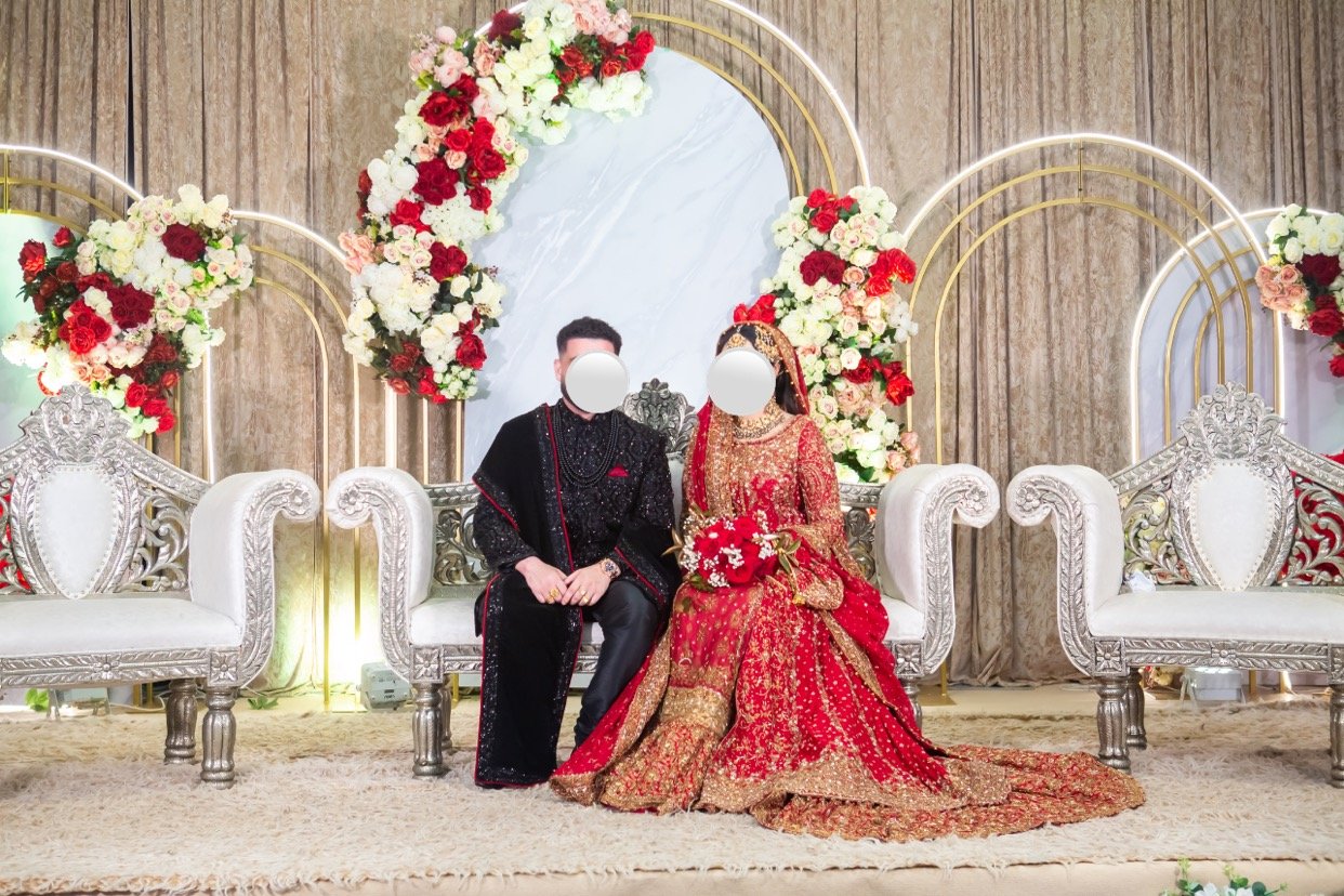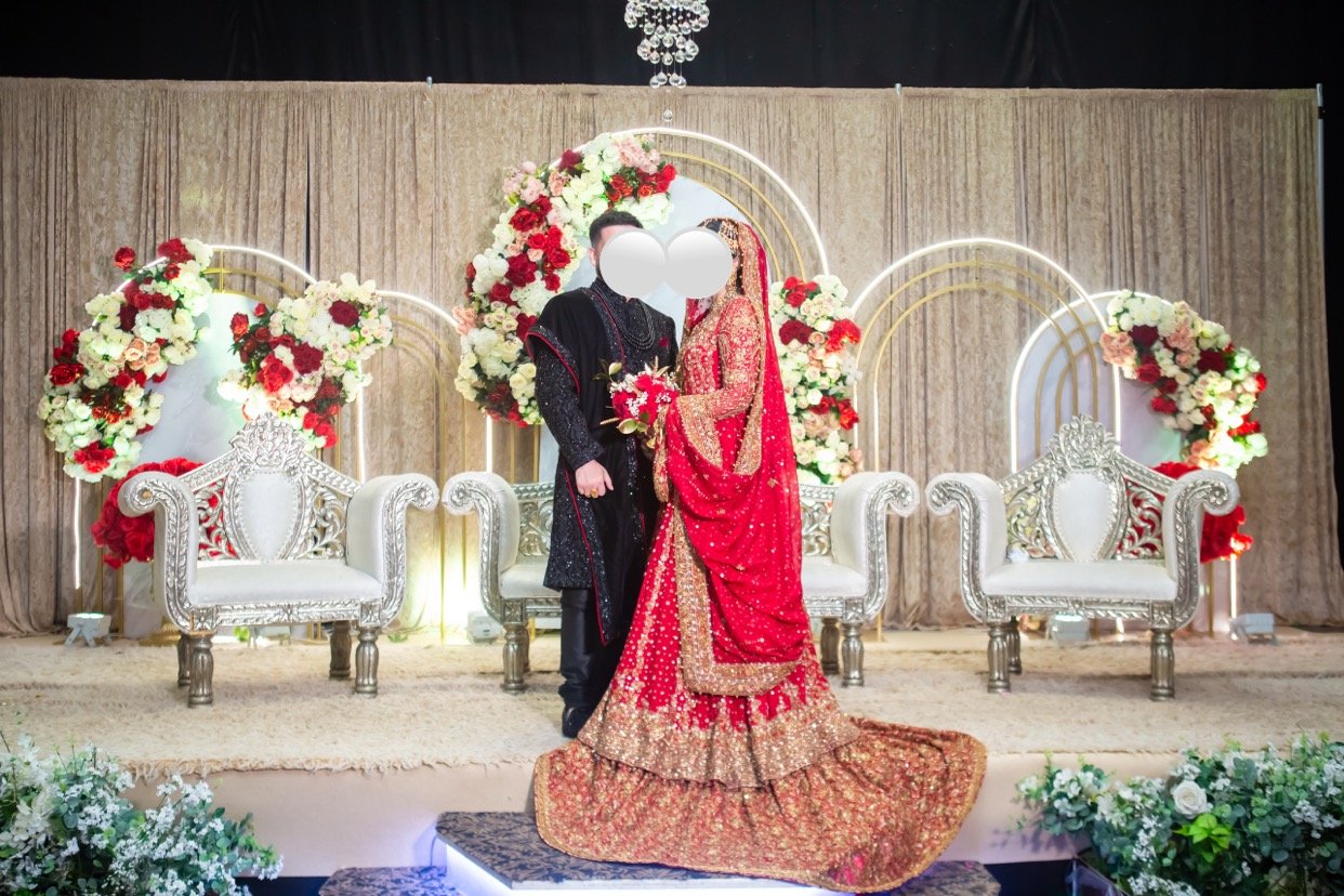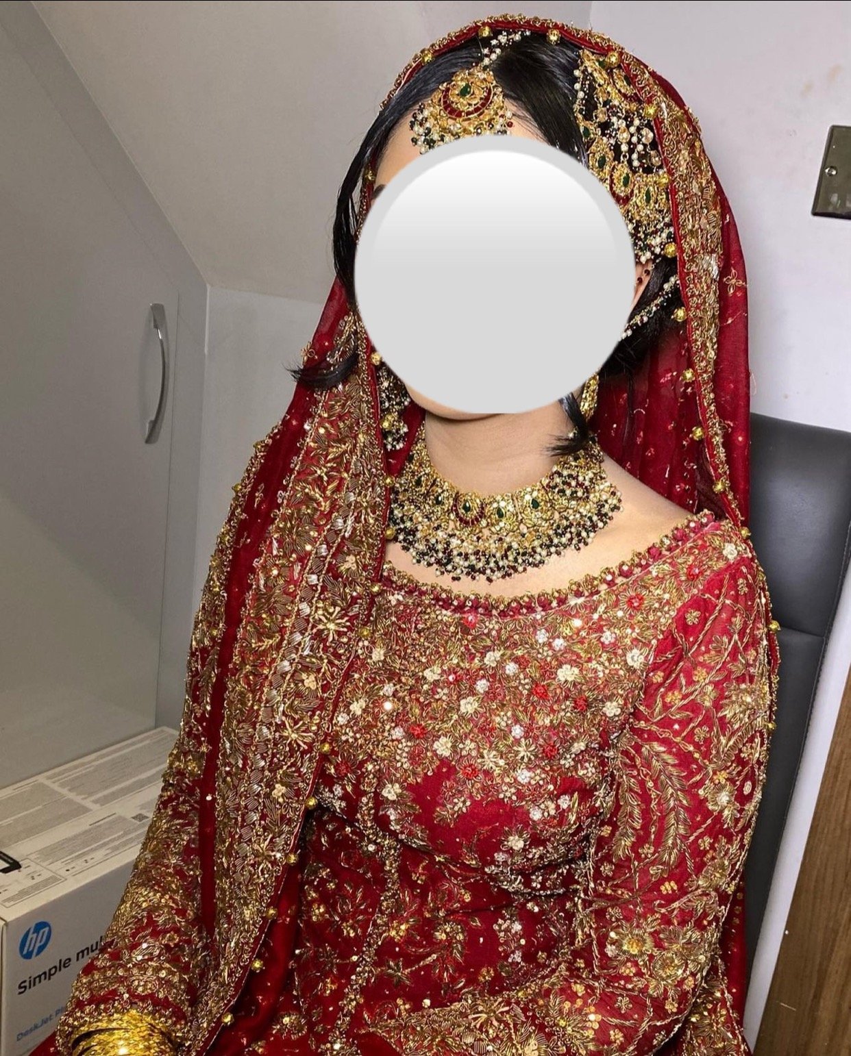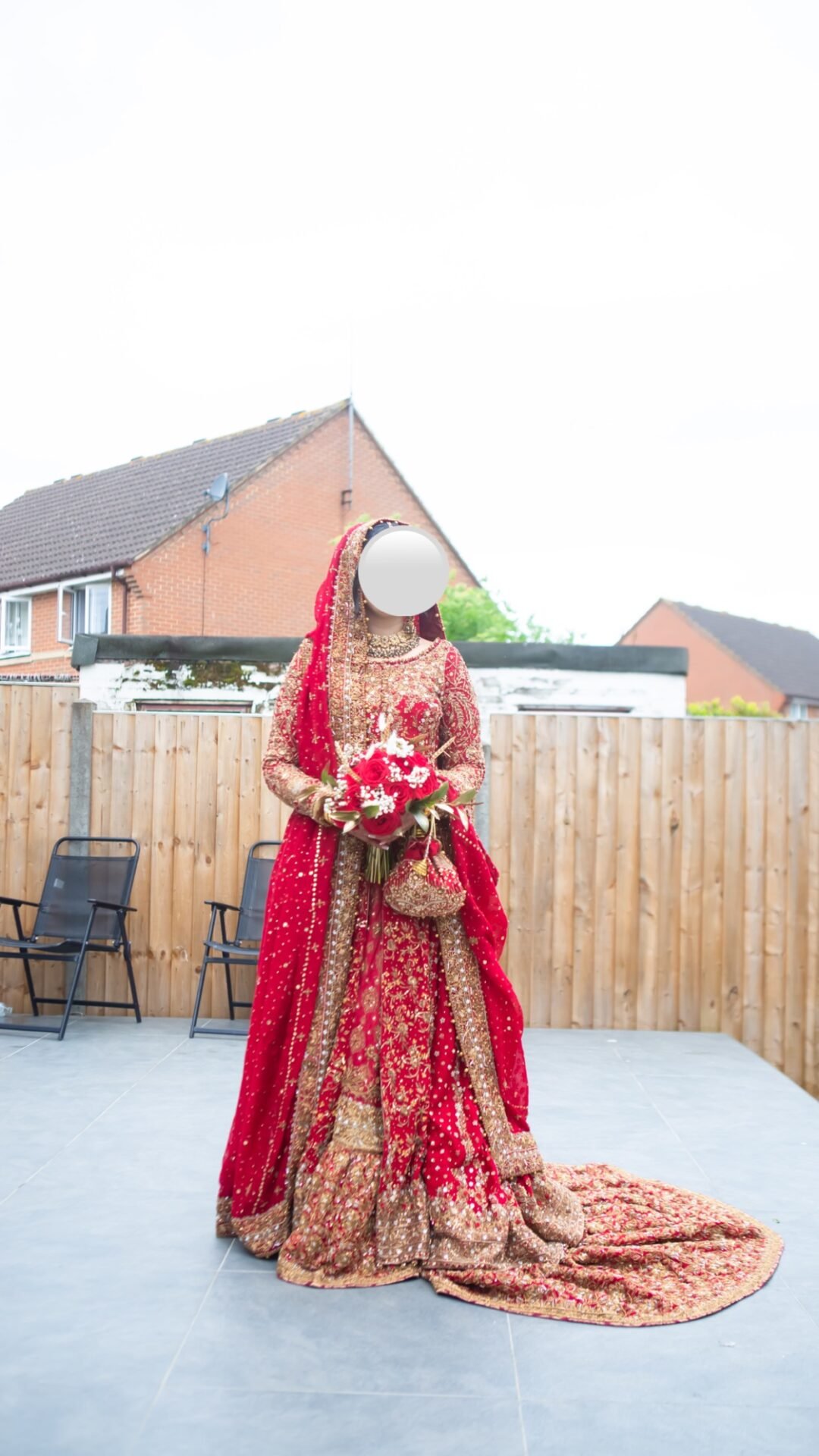 Includes; gown, farshe lenga, polti bag and dupatta