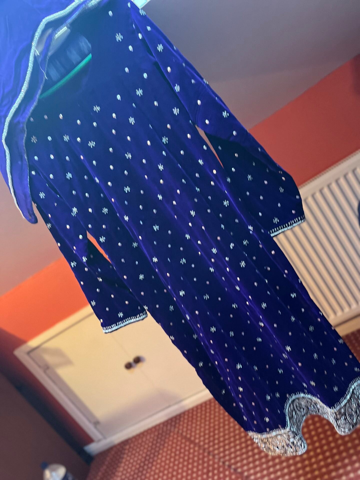 A beautiful velvet trouser suit, only wore once for a few hours, excellent condition and quality, medium size