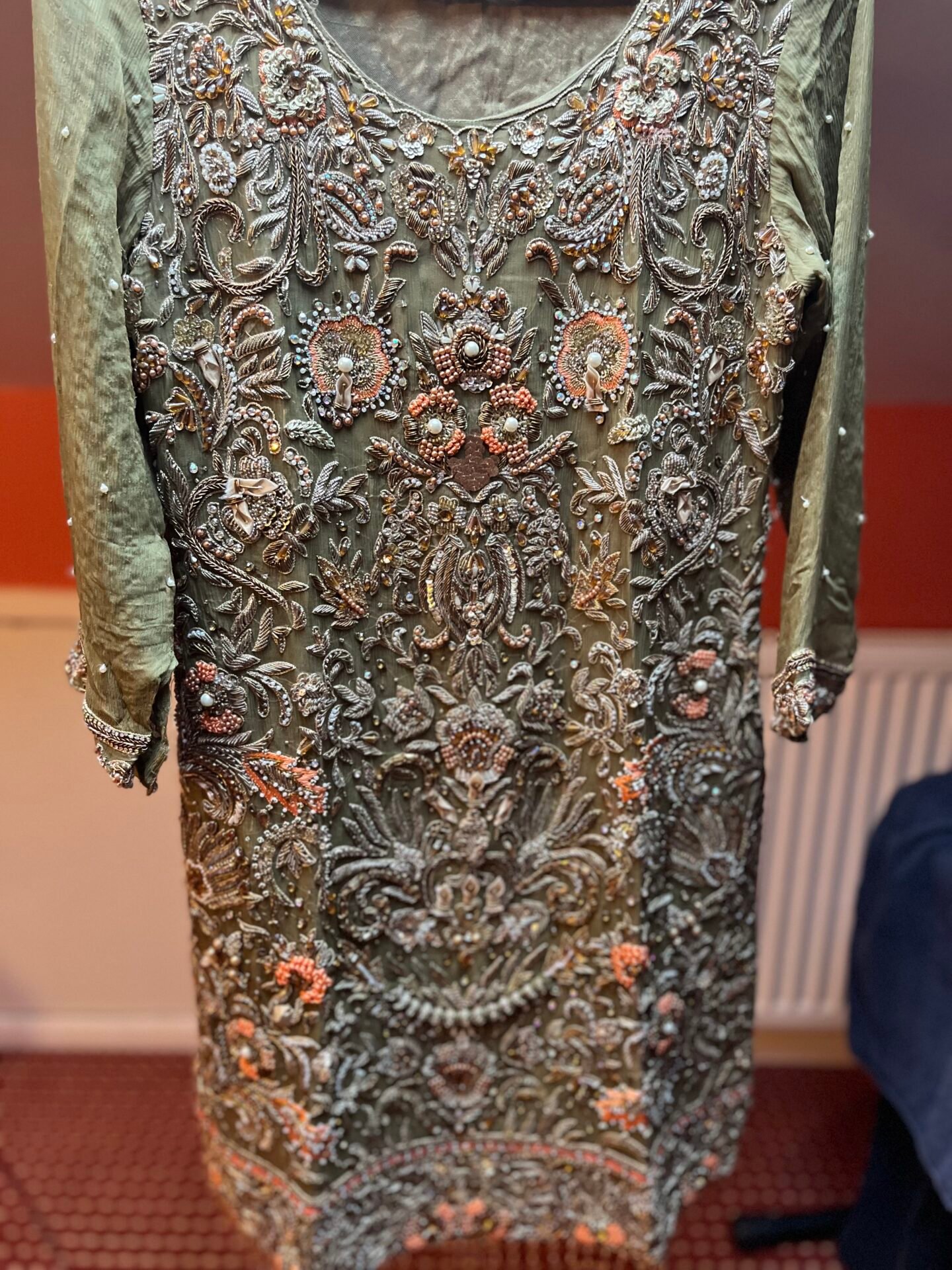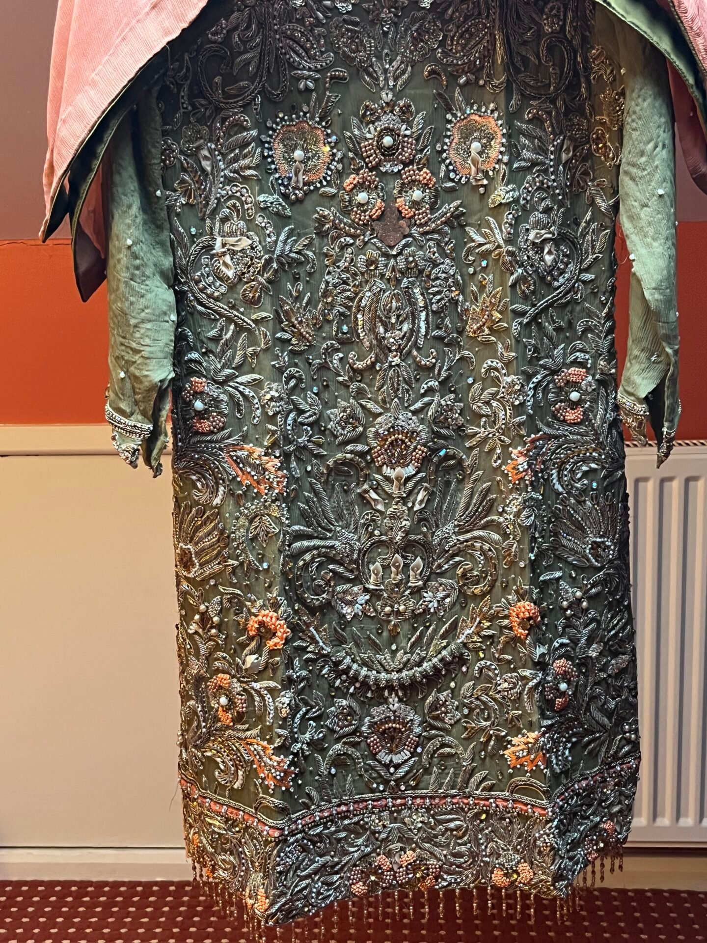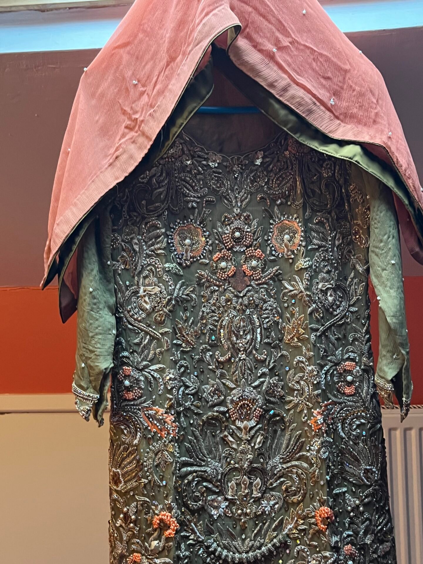 A lovely heavy embroidered sharala suit ideal for wedding/party, only worn once for a few hours, a few scuffs under the arms (see pictures) but apart from that in very good condition, originally purchased for £650